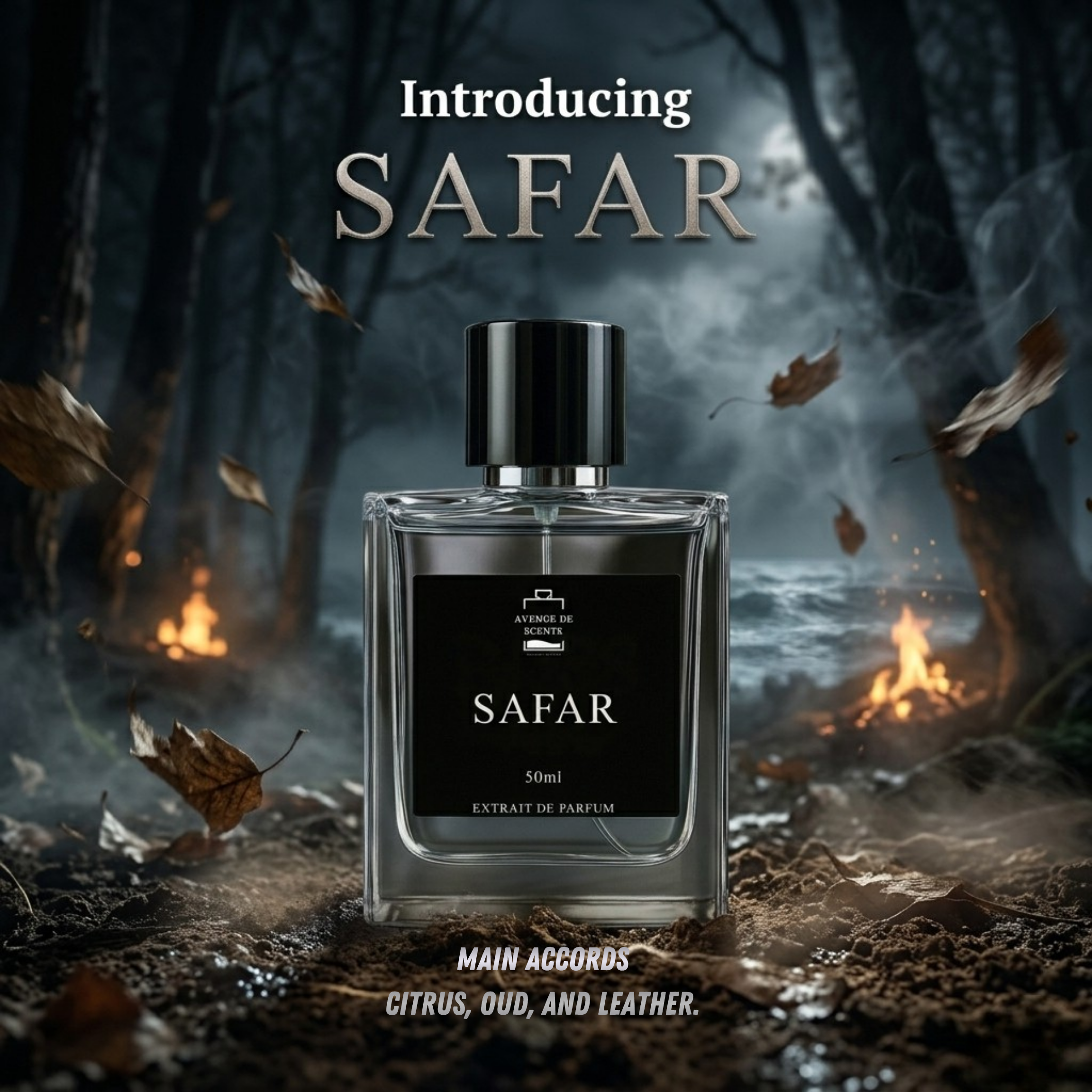 Safar is popular, unisex “Amber Woody” fragrance known for its potent performance and Middle Eastern opulence. It is often described as a bold, “royal” scent that balances fresh citrus and herbal top notes with a deep, leathery agarwood (oud) base.